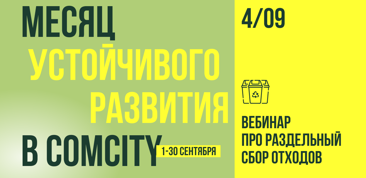 С 1 по 30 сентября в Comcity пройдет месяц устойчивого развития. Проект объединит три ключевые темы: экологические инициативы, социальную ответственность и заботу о ментальном здоровье.